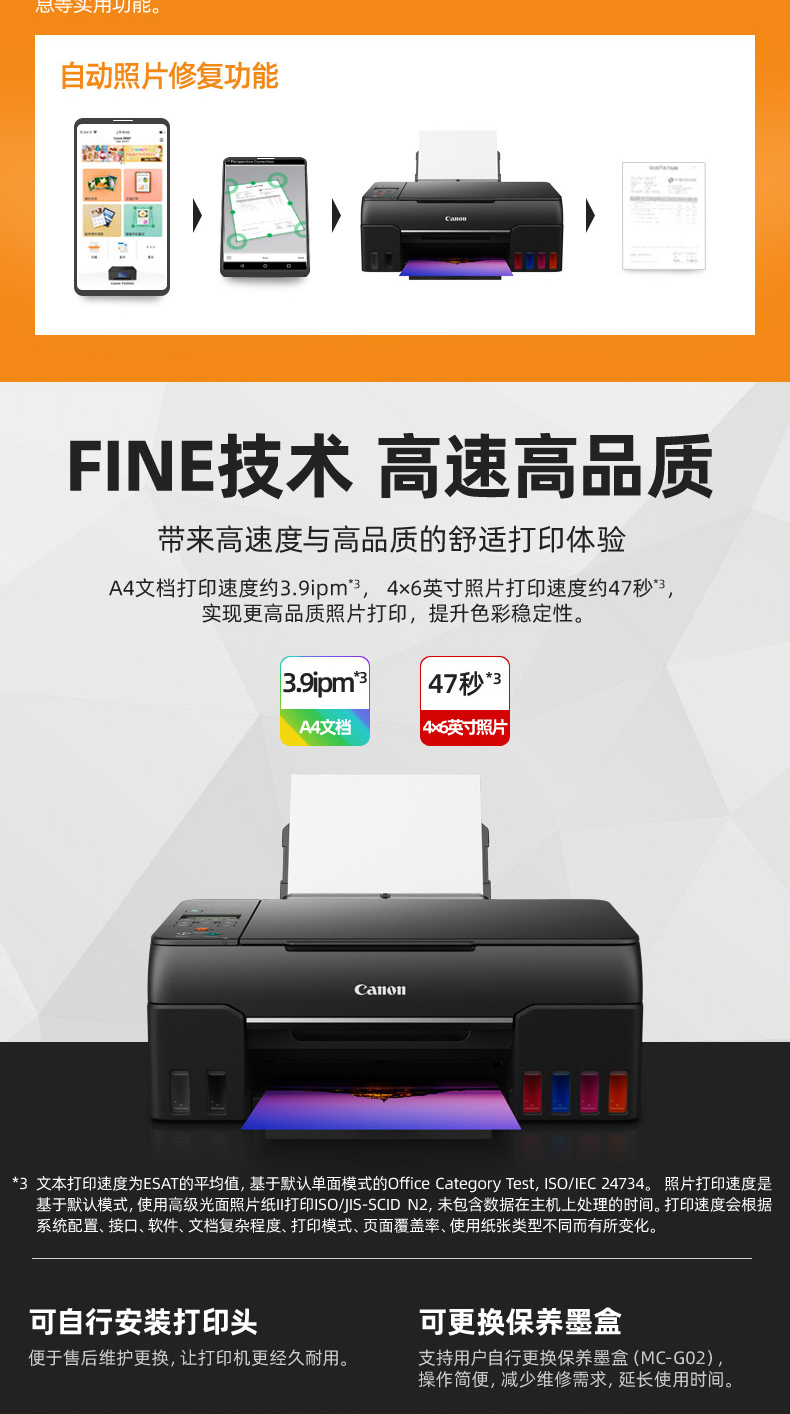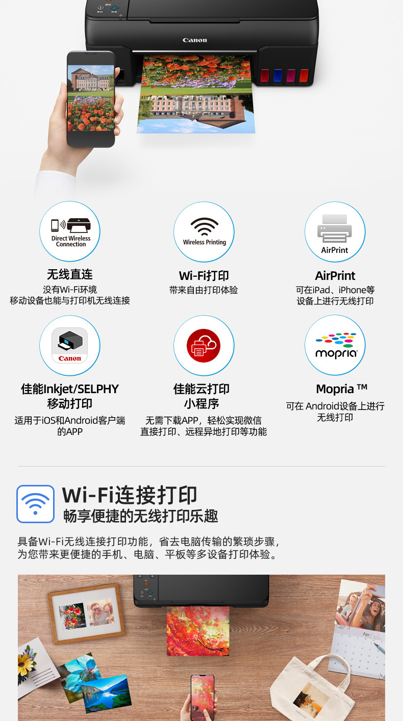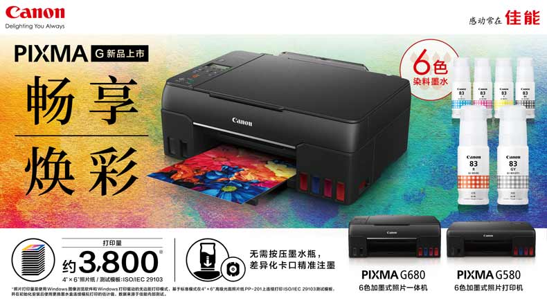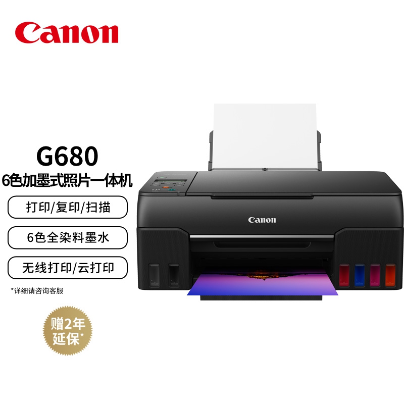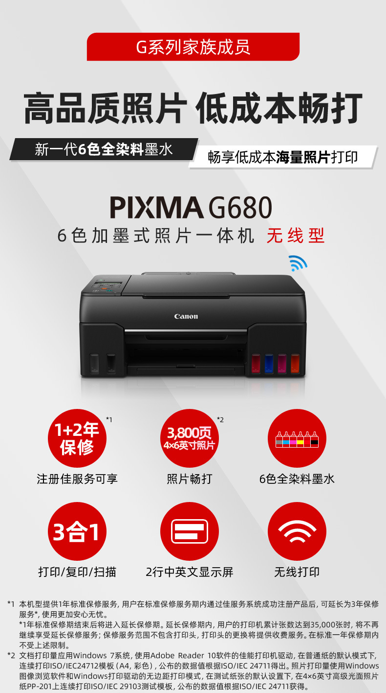佳能(Canon)G680 6色加墨式照片一體機(打印/復印/掃描 WiFi/微信遠程打印 低成本大印量照片打印 家用)