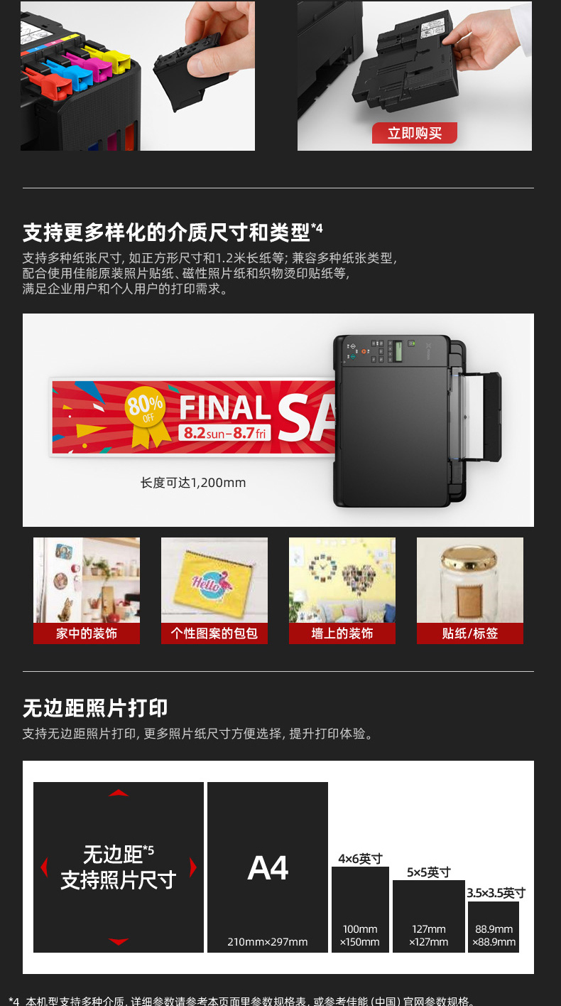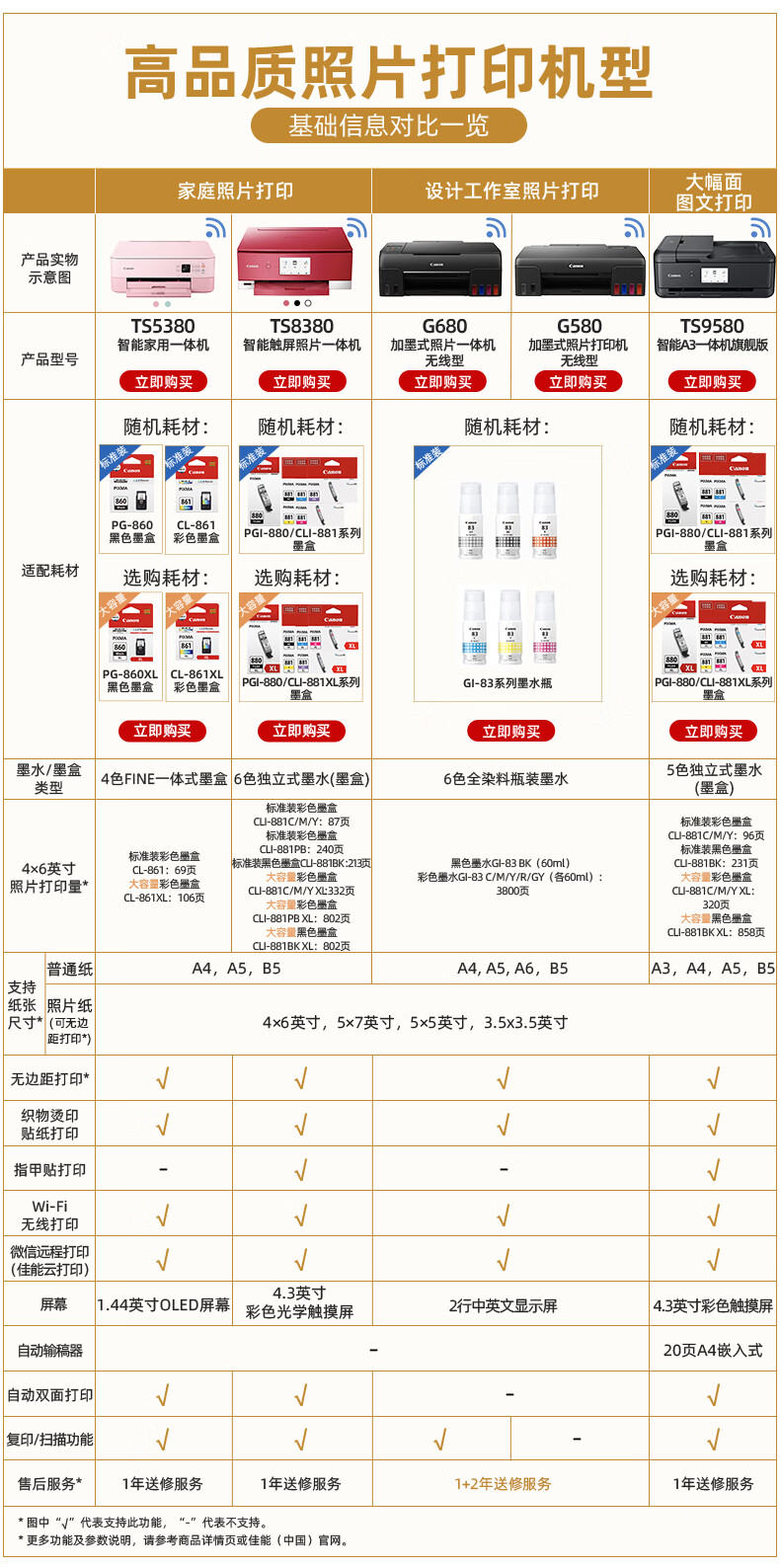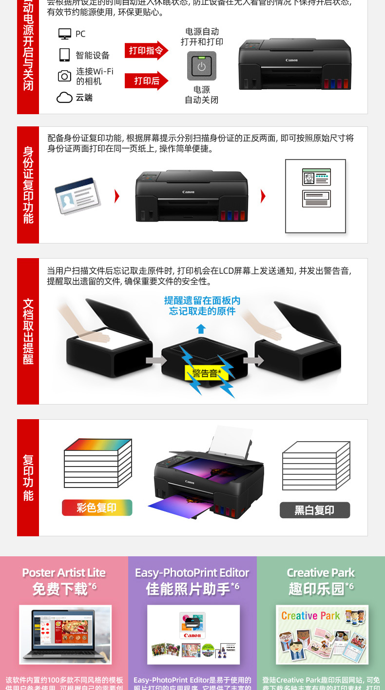佳能(Canon)G680 6色加墨式照片一體機(打印/復印/掃描 WiFi/微信遠程打印 低成本大印量照片打印 家用)