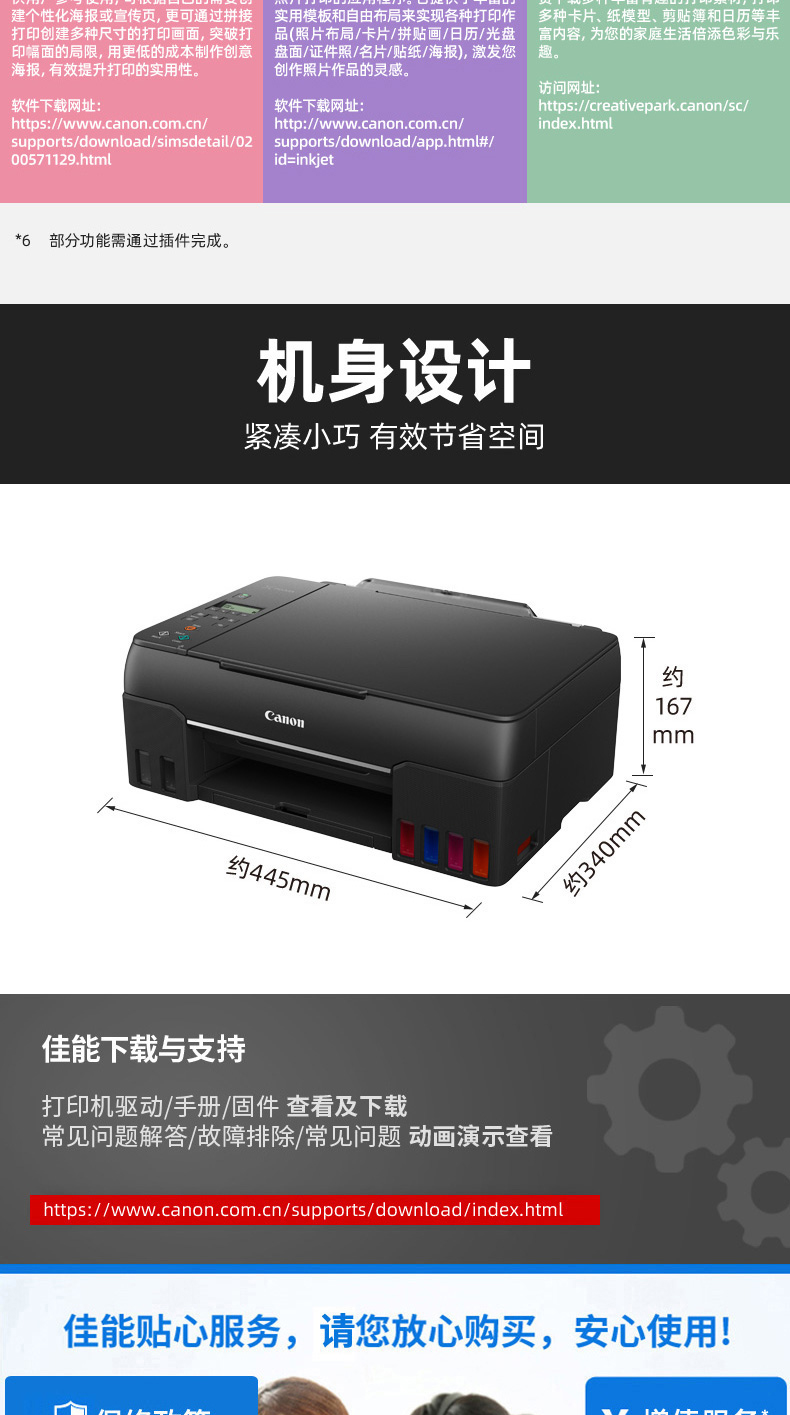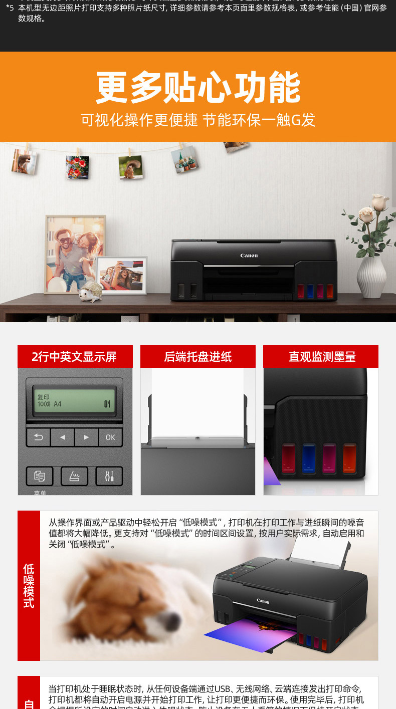 佳能(Canon)G2811大容量可加墨彩色多功能一體機(打印/復印/掃描/作業(yè)打印/照片打印機 學生/家用)