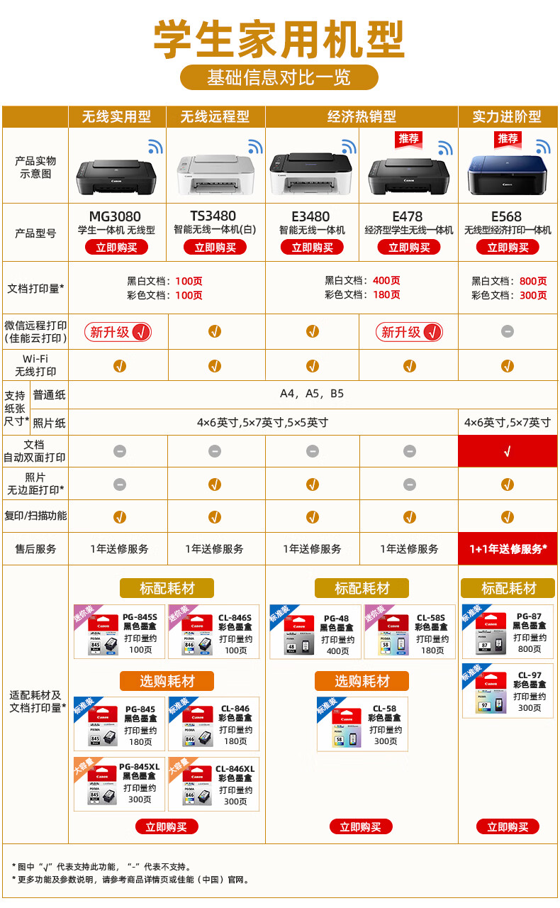 佳能(Canon)E478R彩色噴墨打印復印掃描傳真一體機學生 E478R無線款【手機+】經濟型 官方標配