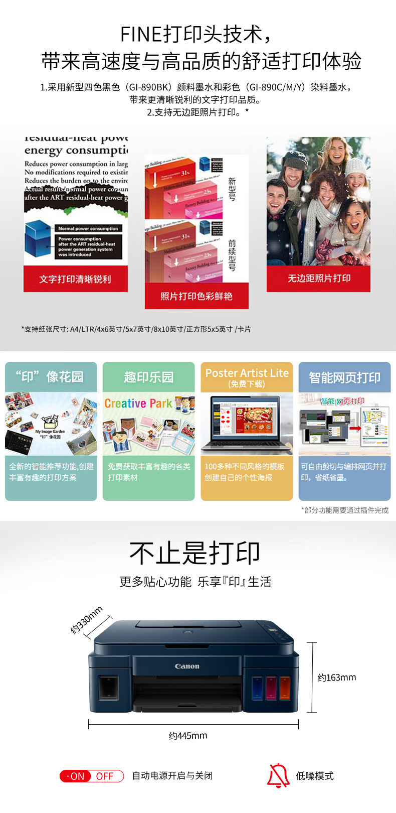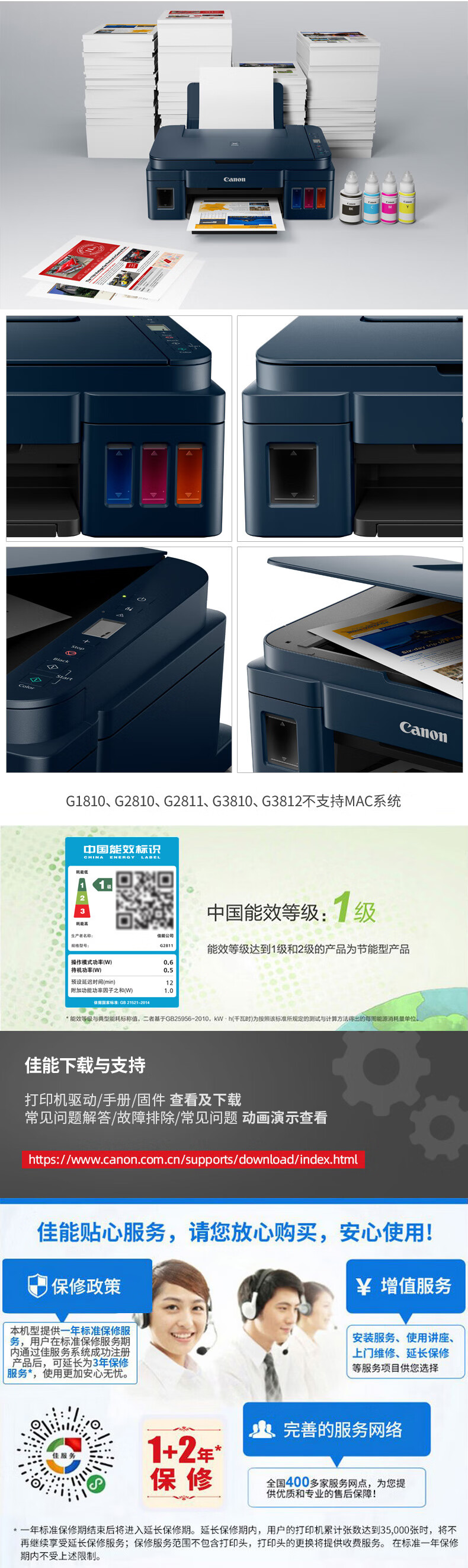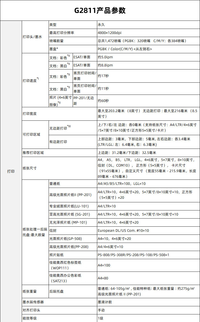 佳能(Canon)G2811大容量可加墨彩色多功能一體機(jī)(打印/復(fù)印/掃描/作業(yè)打印/照片打印機(jī) 學(xué)生/家用)
