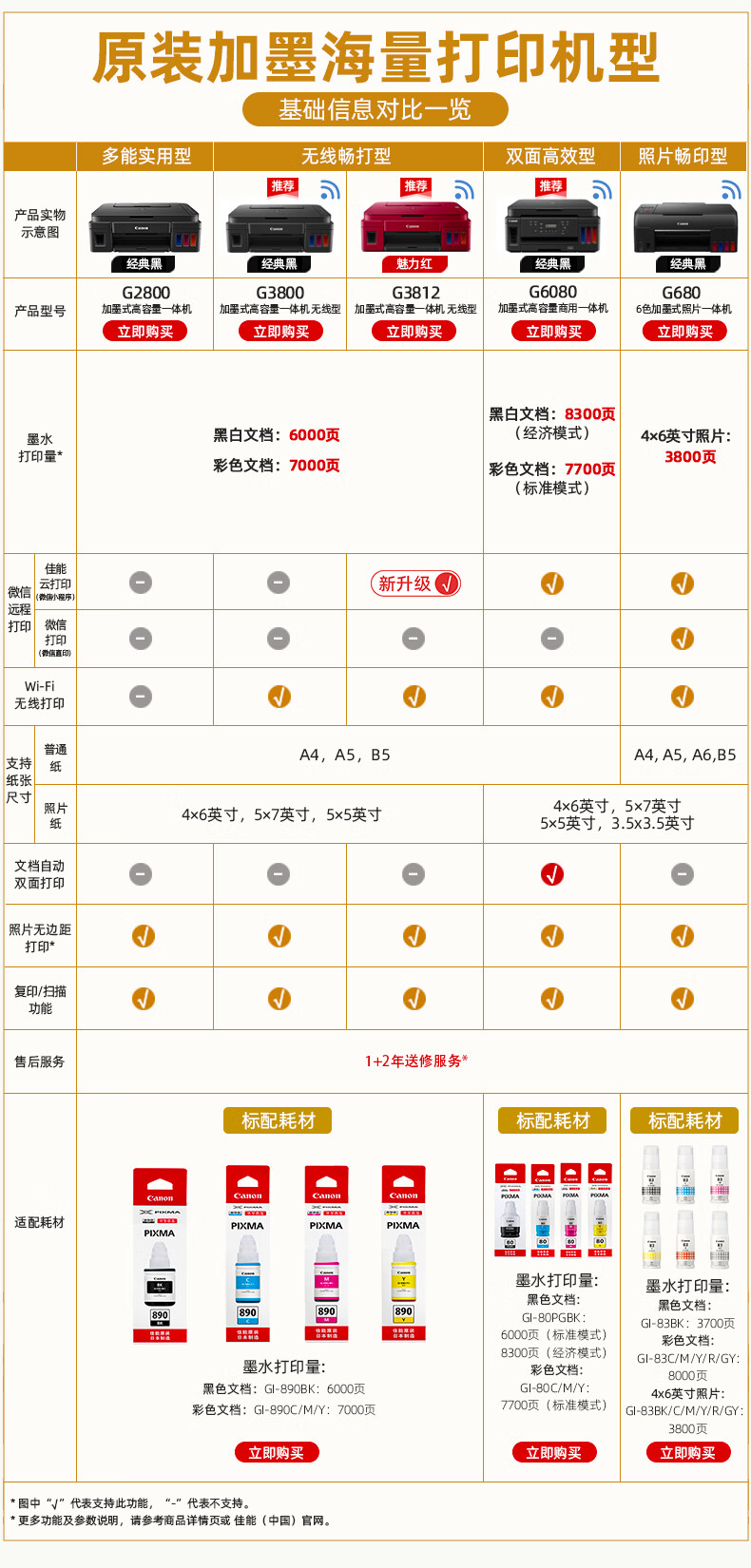 佳能(Canon)G680 6色加墨式照片一體機(打印/復印/掃描 WiFi/微信遠程打印 低成本大印量照片打印 家用)