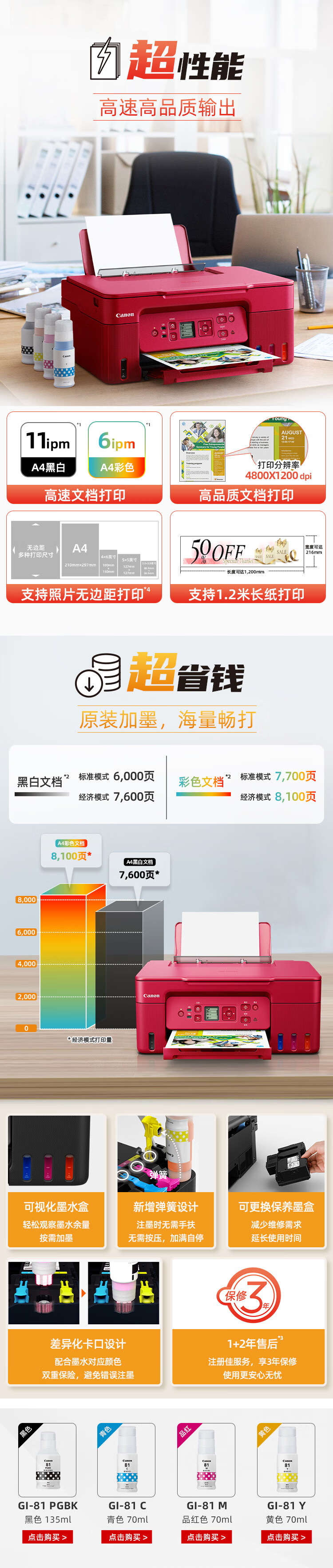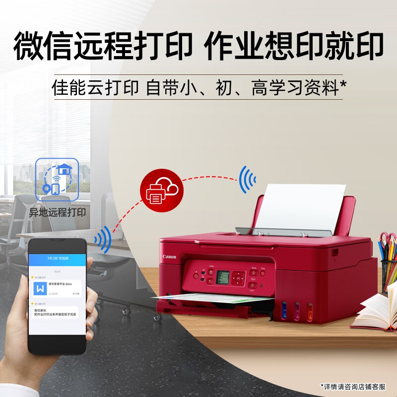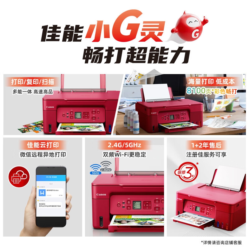 佳能(Canon)G3871大容量可加墨彩色多功能無線一體機(打印/復印/掃描/雙頻WiFi 支持5G 學生/家用)